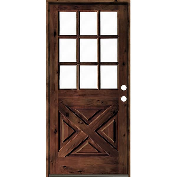 36 in. x 80 in. Knotty Alder Left-Hand/Inswing X-Panel 1/2 Lite Clear Glass Red Mahogany Stain Wood Prehung Front Door