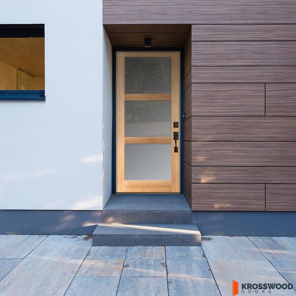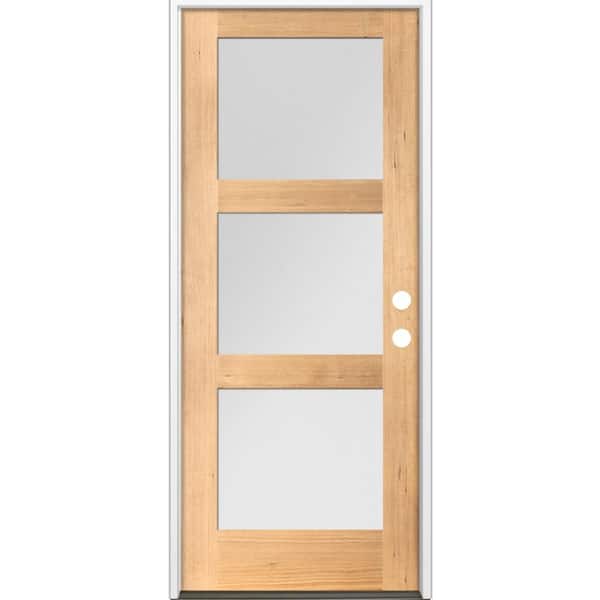 36 in. x 80 in. Modern Hemlock 3-Lite Left-Hand/Inswing Frosted Glass Clear Stain Wood Prehung Front Door