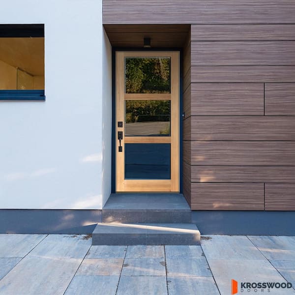 36 in. x 80 in. Modern Hemlock 3-Lite Right-Hand/Inswing Frosted Glass Clear Stain Wood Prehung Front Door