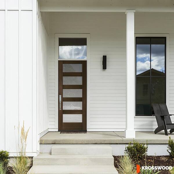 36 in. x 80 in. Modern Hemlock 5-Lite Right-Hand/Inswing Frosted Glass Black Stain Wood Prehung Front Door