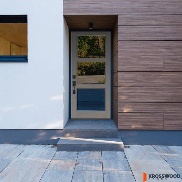 36 in. x 80 in. Modern Hemlock Right-Hand/Inswing 3-Lite Clear Glass Grey Stain Wood Prehung Front Door