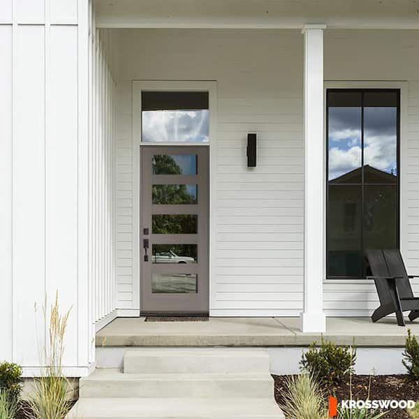 36 in. x 80 in. Modern Hemlock Right-Hand/Inswing 5-Lite Clear Glass Grey Stain Wood Prehung Front Door
