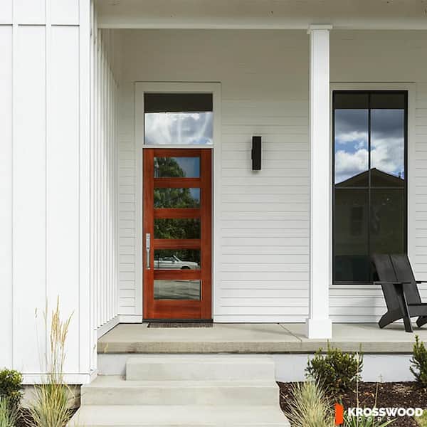 36 in. x 80 in. Modern Hemlock Right-Hand/Inswing 5-Lite Clear Glass Red Chestnut Stain Wood Prehung Front Door