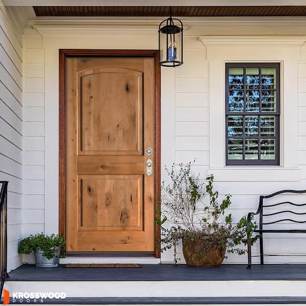 36 in. x 80 in. Rustic Knotty Alder Arch Top Clear Stain Left-Hand Inswing Wood Single Prehung Front Door
