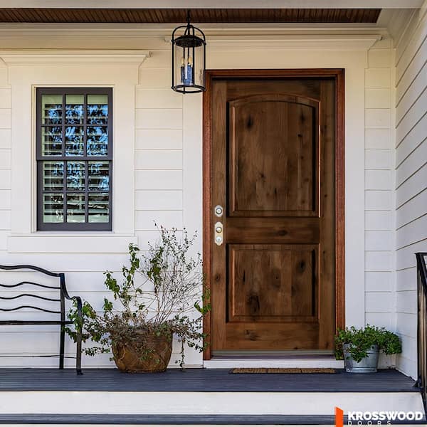 36 in. x 80 in. Rustic Knotty Alder Arch Top Provincial Stain Right-Hand Inswing Wood Single Prehung Front Door
