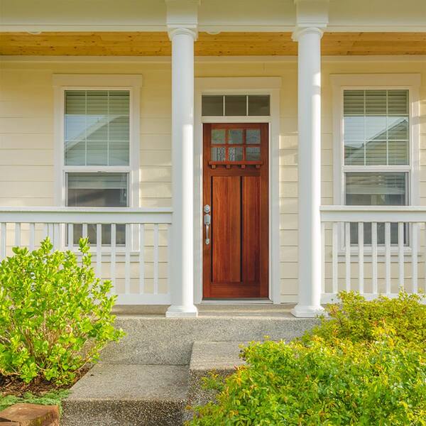 • Craftsman style door features 6 Low-E clear glass window panes