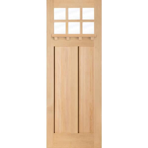 36 in. x 96 in. Craftsman Universal Handing 6 Lite Clear Glass Unstained Hemlock Wood Front Door Slab with Dentil Shelf