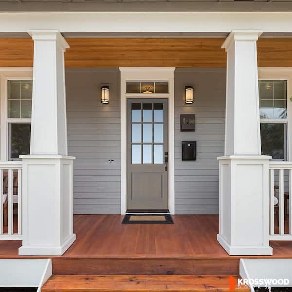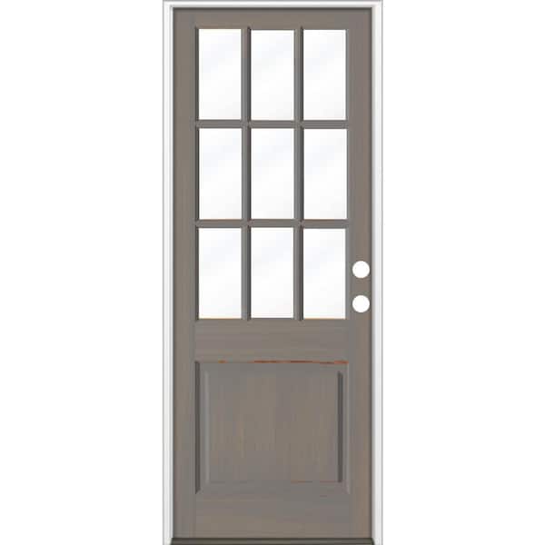 36 in. x 96 in. Farmhouse Beveled 9-Lite Clear Glass Left Hand Grey Stain Hemlock Wood Prehung Front Door