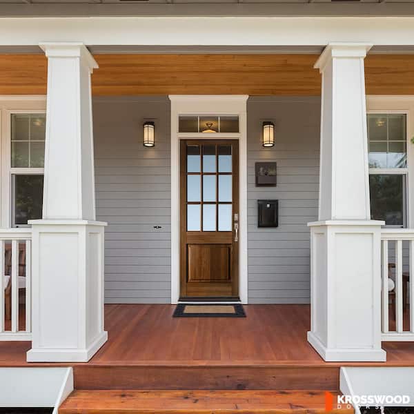 36 in. x 96 in. Farmhouse Beveled 9-Lite Clear Glass Left Hand Provincial Stain Hemlock Wood Prehung Front Door