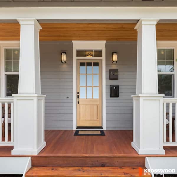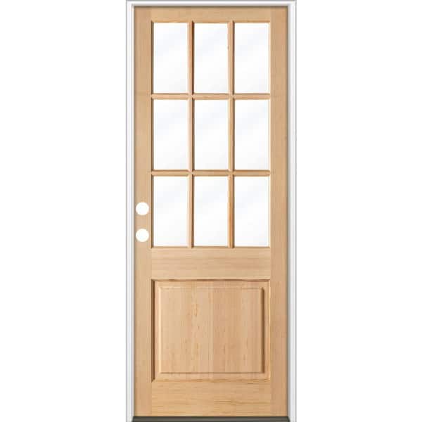 36 in. x 96 in. Farmhouse Beveled 9-Lite Clear Glass Right Hand Unfinished Hemlock Wood Prehung Front Door