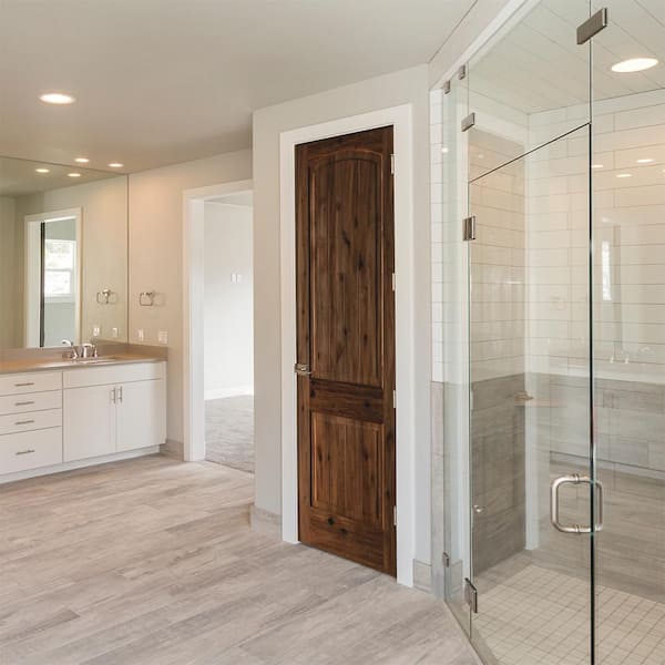 36 in. x 96 in. Knotty Alder 2-Panel Left-Hand Top Rail Arch V-Groove Grey Stain Wood Single Prehung Interior Door