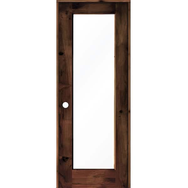 36 in. x 96 in. Knotty Alder Right-Hand Full-Lite Clear Glass Red Mahogany Stain Wood Single Prehung Interior Door
