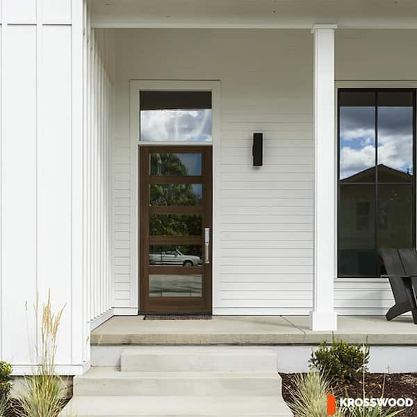 36 in. x 96 in. Modern Hemlock Left-Hand/Inswing 5-Lite Clear Glass Black Stain Wood Prehung Front Door