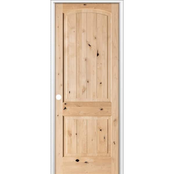 36 in. x 96 in. Rustic 2-Panel Arch Top VG Right-Hand Unfinished Knotty Alder Wood Single Prehung Interior Door