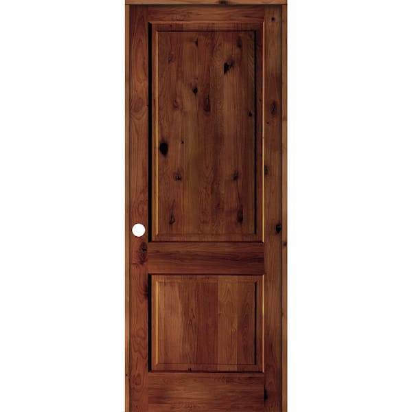 36 in. x 96 in. Rustic Knotty Alder 2 Panel Right Hand Red Chestnut Stain Wood Single Prehung Interior Door w/Square Top