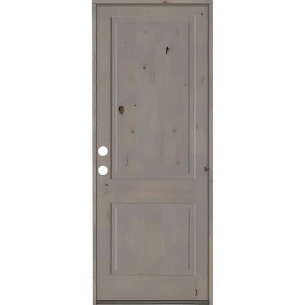 36 in. x 96 in. Rustic Knotty Alder 2 Panel Square Top Right-Hand/Inswing Grey Stain Wood Prehung Front Door