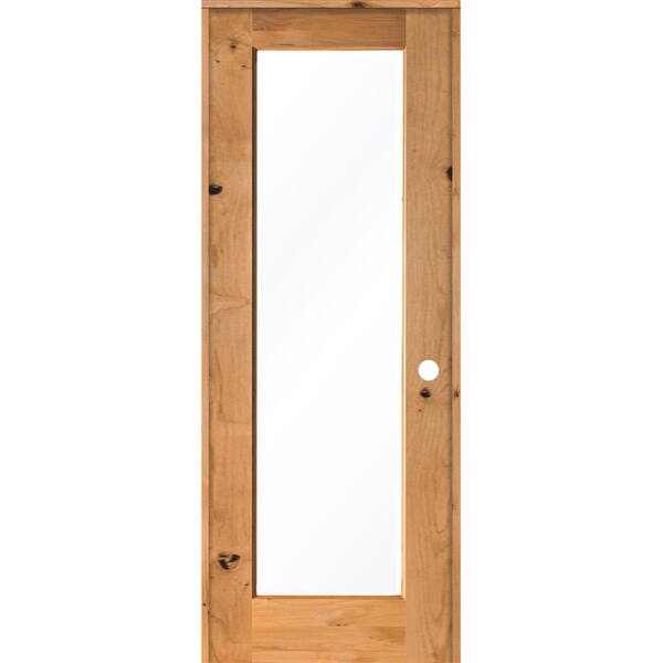 36 in. x 96 in. Rustic Knotty Alder Left-Hand Full-Lite Clear Glass Clear Stain Solid Wood Single Prehung Interior Door
