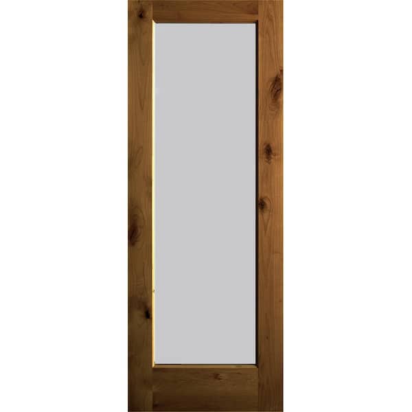 36 in. x 96 in. Rustic Knotty Alder Wood Satin Etch Full-Lite Provincial Stain Left Hand Single Prehung Front Door
