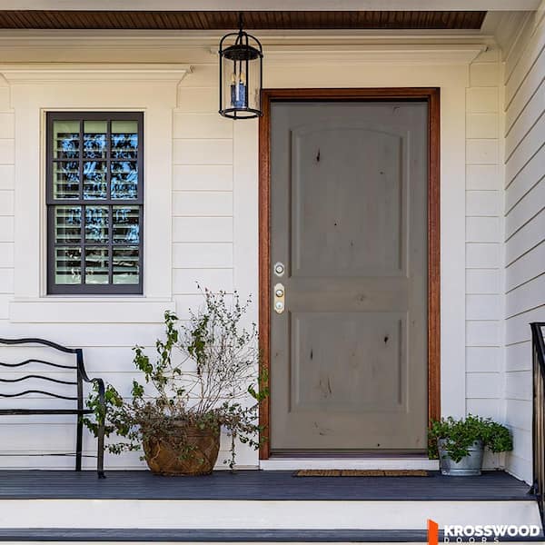 42 in. x 80 in. Knotty Alder 2 Panel Right-Hand/Inswing Grey Stain Wood Prehung Front Door
