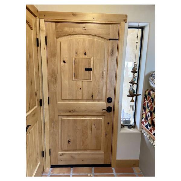 42 in. x 80 in. Mediterranean Knotty Alder Arch Top Clear Stain Right-Hand Inswing Wood Single Prehung Front Door