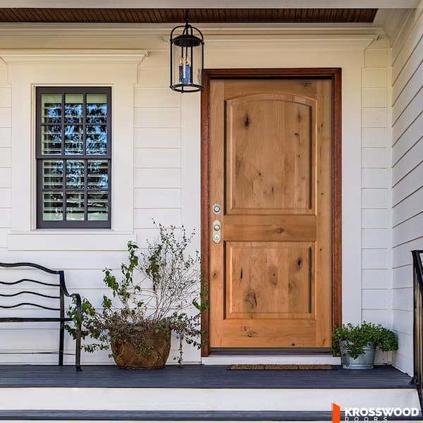 42 in. x 80 in. Rustic Knotty Alder Arch Top Clear Stain Right-Hand Inswing Wood Single Prehung Front Door