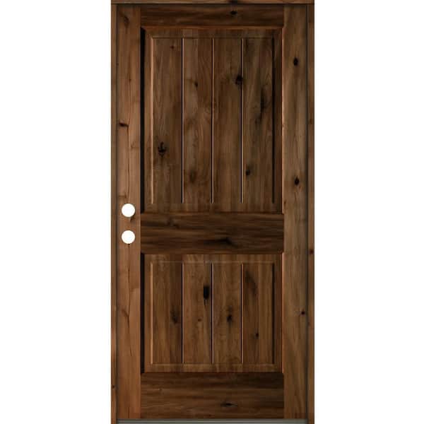 42 in. x 80 in. Rustic Knotty Alder Square Top V-Grooved Provincial Stain Right-Hand Wood Single Prehung Front Door