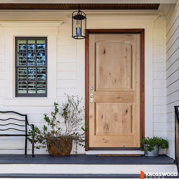 42 in. x 80 in. Rustic Knotty Alder Top Rail Arch Right-Hand Inswing Unfinished Exterior Wood Prehung Front Door