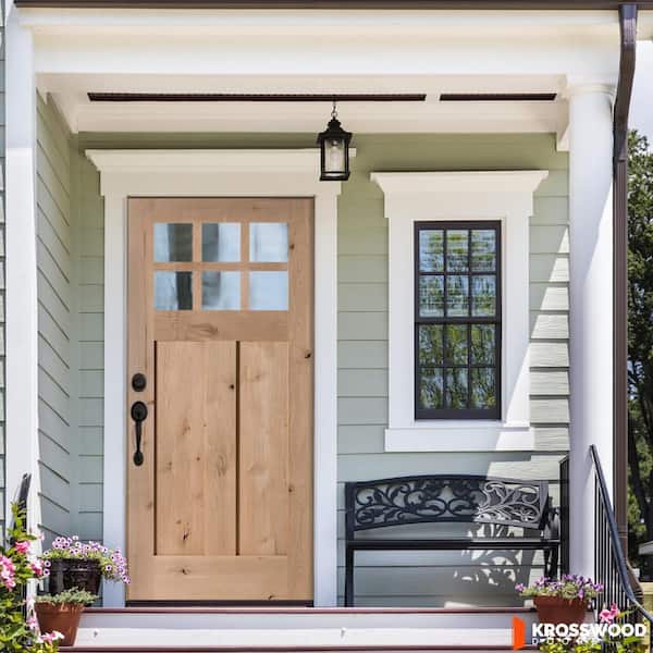 42 in. x 96 in. Craftsman Knotty Alder Right-Hand/Inswing 6 Lite Beveled Clear Glass Unfinished Wood Prehung Front Door