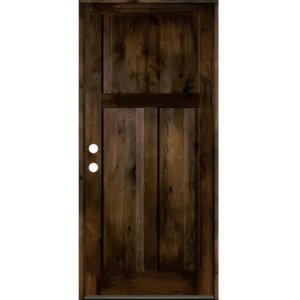 42 in. x 96 in. Knotty Alder 3-Panel Right-Hand/Inswing Black Stain Wood Prehung Front Door