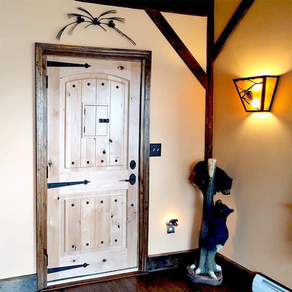 42 in. x 96 in. Mediterranean Knotty Alder Arch Top Clear Stain Right-Hand Inswing Wood Single Prehung Front Door