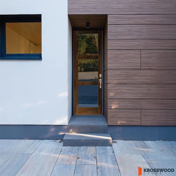 42 in. x 96 in. Modern Hemlock Left-Hand/Inswing 3-Lite Clear Glass Provincial Stain Wood Prehung Front Door
