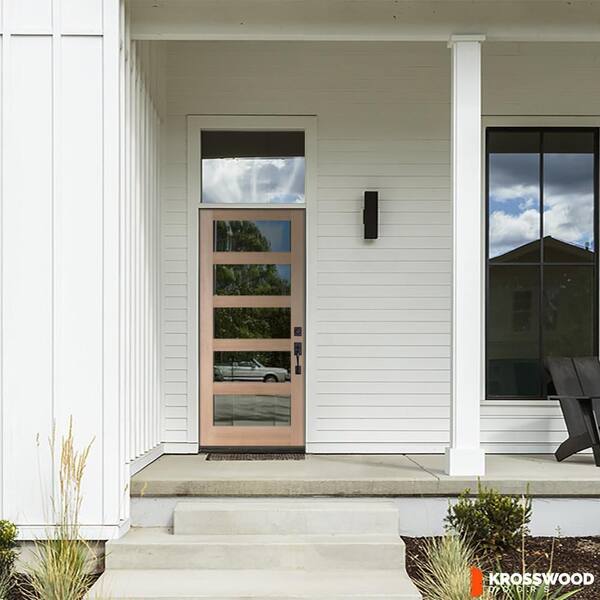 42 in. x 96 in. Modern Hemlock Left-Hand/Inswing 5-Lite Clear Glass unfinished Wood Prehung Front Door