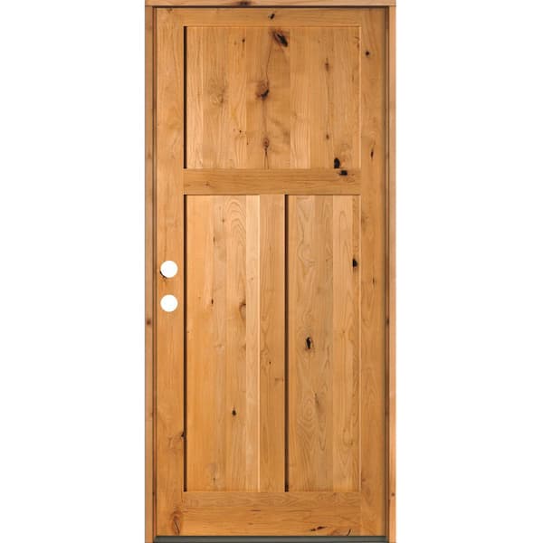 42 in. x 96 in. Rustic Knotty Alder 3-Panel Right-Hand/Inswing Clear Stain Wood Prehung Front Door