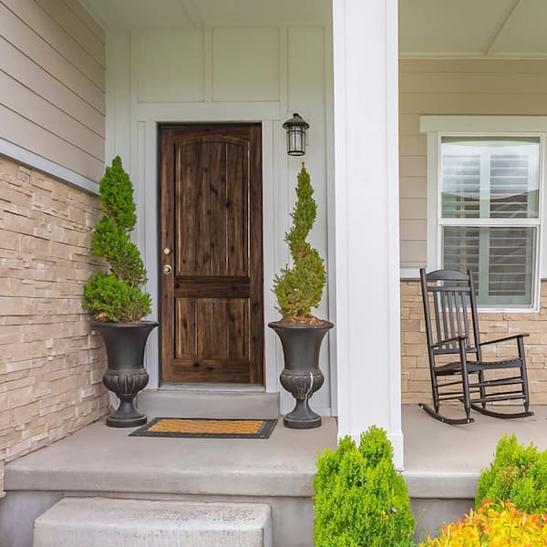 42 in. x 96 in. Rustic Knotty Alder Arch Top V-Grooved Clear Stain Right-Hand Inswing Wood Single Prehung Front Door