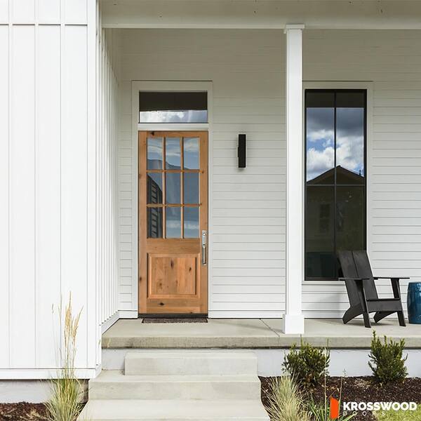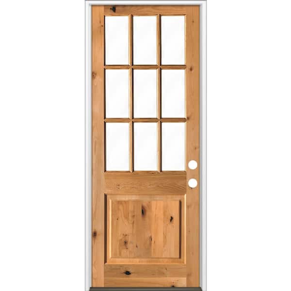 42 in. x 96 in. Rustic Knotty Alder Clear Low-E Glass 9-Lite Clear Stain Left Hand Inswing Single Prehung Front Door