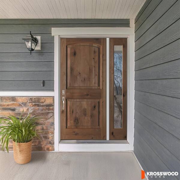 44 in. x 80 in. Knotty Alder 2-Panel Arch Right-Hand/Inswing Clear Glass True Black Stain Wood Prehung Front Door w/RFSL