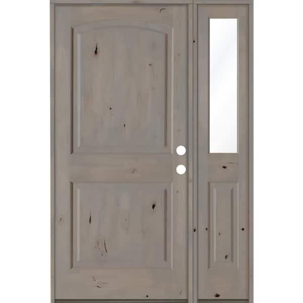 44 in. x 80 in. Knotty Alder 2 Panel Left-Hand/Inswing Clear Glass Grey Stain Wood Prehung Front Door with Sidelite