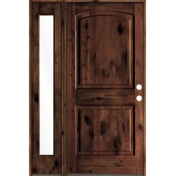 44 in. x 80 in. Knotty Alder 2 Panel Left-Hand/Inswing Clear Glass Red Mahogany Stain Wood Prehung Front Door w/Sidelite