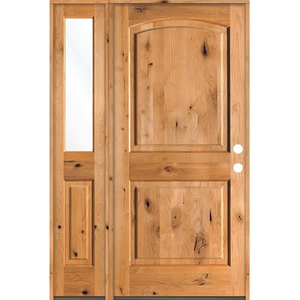 44 in. x 80 in. Knotty Alder Left-Hand/Inswing Clear Glass Clear Stain Wood Prehung Front Door with Left Sidelite