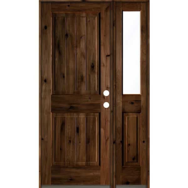 44 in. x 80 in. Knotty Alder Square Top Left-Hand/Inswing Clear Glass Provincial Stain Wood Prehung Front Door w/RHSL