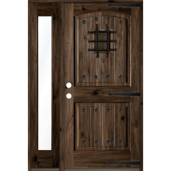 44 in. x 80 in. Mediterranean Alder Right-Hand/Inswing Clear Glass Black Stain Wood Prehung Front Door with Sidelite