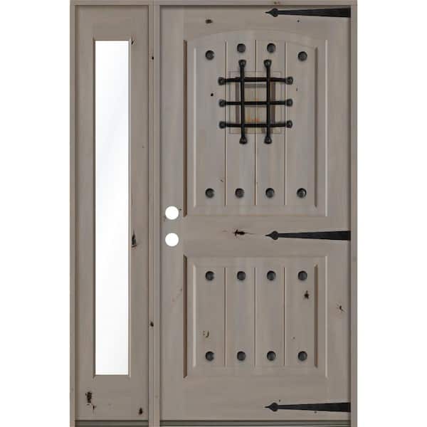 44 in. x 80 in. Mediterranean Knotty Alder Right-Hand/Inswing Clear Glass Grey Stain Wood Prehung Front Door