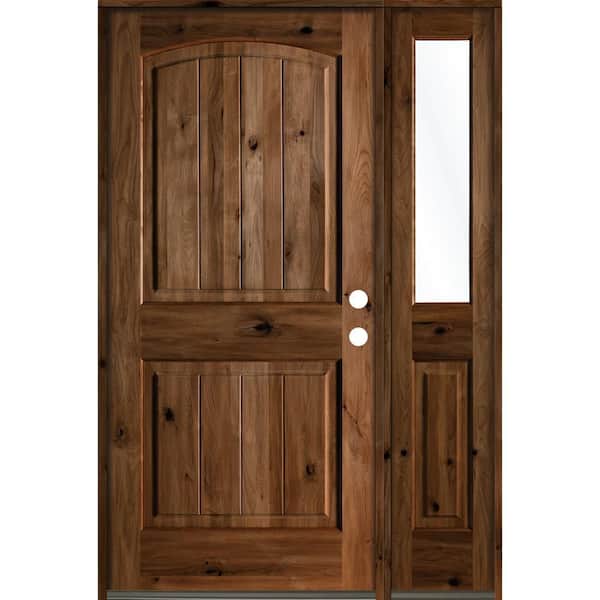 44 in. x 80 in. Rustic Knotty Alder Left-Hand/Inswing Clear Glass Provincial Stain Wood Prehung Front Door with RHSL