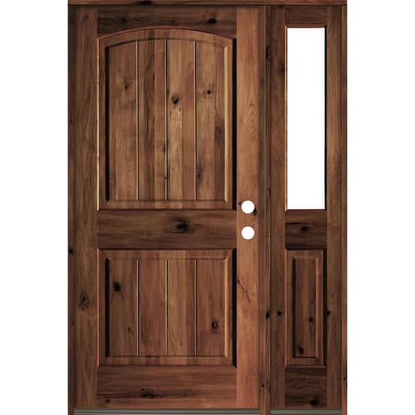44 in. x 80 in. Rustic Knotty Alder Left-Hand/Inswing Clear Glass Red Mahogany Stain Wood Prehung Front Door with RHSL