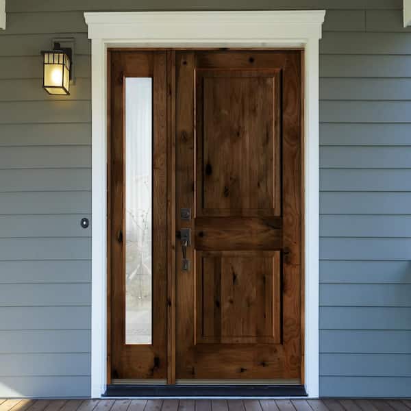 44 in. x 80 in. Rustic Knotty Alder Sidelite 2 Panel Right-Hand/Inswing Clear Glass Black Stain Wood Prehung Front Door