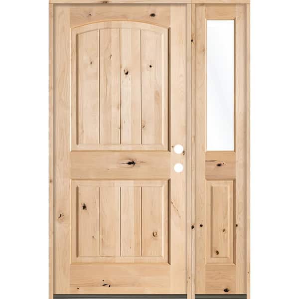 44 in. x 80 in. Rustic Unfinished Knotty Alder Arch Top VG Left-Hand Right Half Sidelite Clear Glass Prehung Front Door