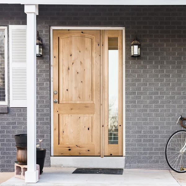 44 in. x 96 in. Knotty Alder 2-Panel Right-Hand/Inswing Clear Glass Black Stain Wood Prehung Front Door w/Right Sidelite