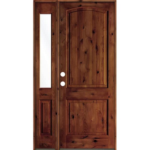 44 in. x 96 in. Knotty Alder 2 Panel Right-Hand/Inswing Clear Glass Red Chestnut Stain Wood Prehung Front Door