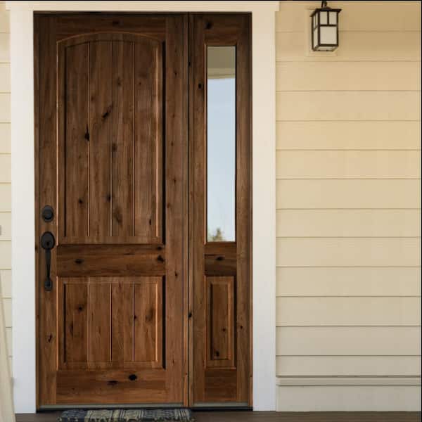 44 in. x 96 in. Rustic Knotty Alder Right-Hand/Inswing Clear Glass Provincial Stain Wood Prehung Front Door with RHSL