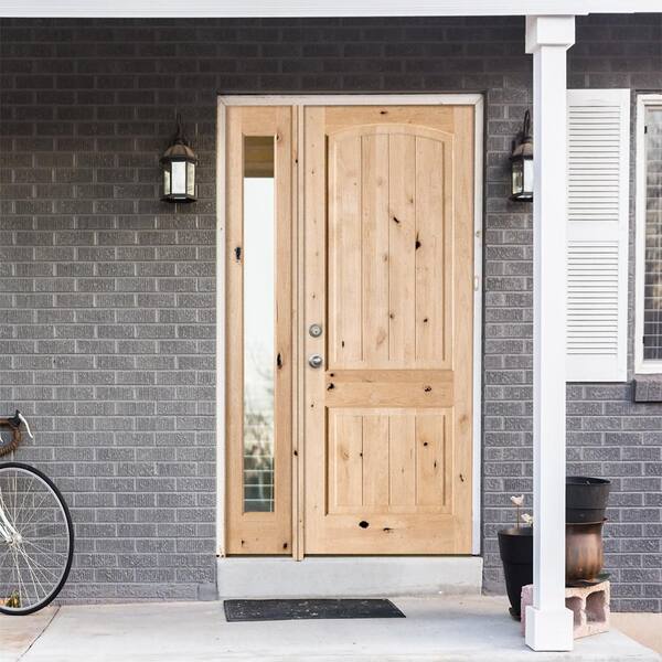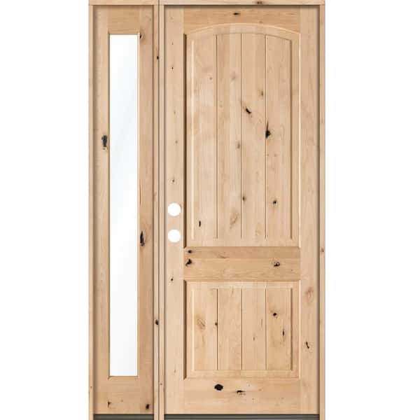 44 in. x 96 in. Rustic Unfinished Knotty Alder Arch VG Right-Hand Left Full Sidelite Clear Glass Prehung Front Door